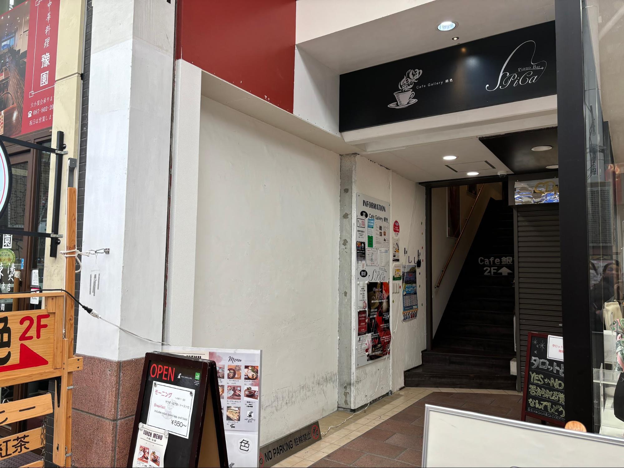 商店街の建物2階にあり、コーヒー、紅茶、モーニング、ランチと幅広く楽しめるギャラリーカフェです。