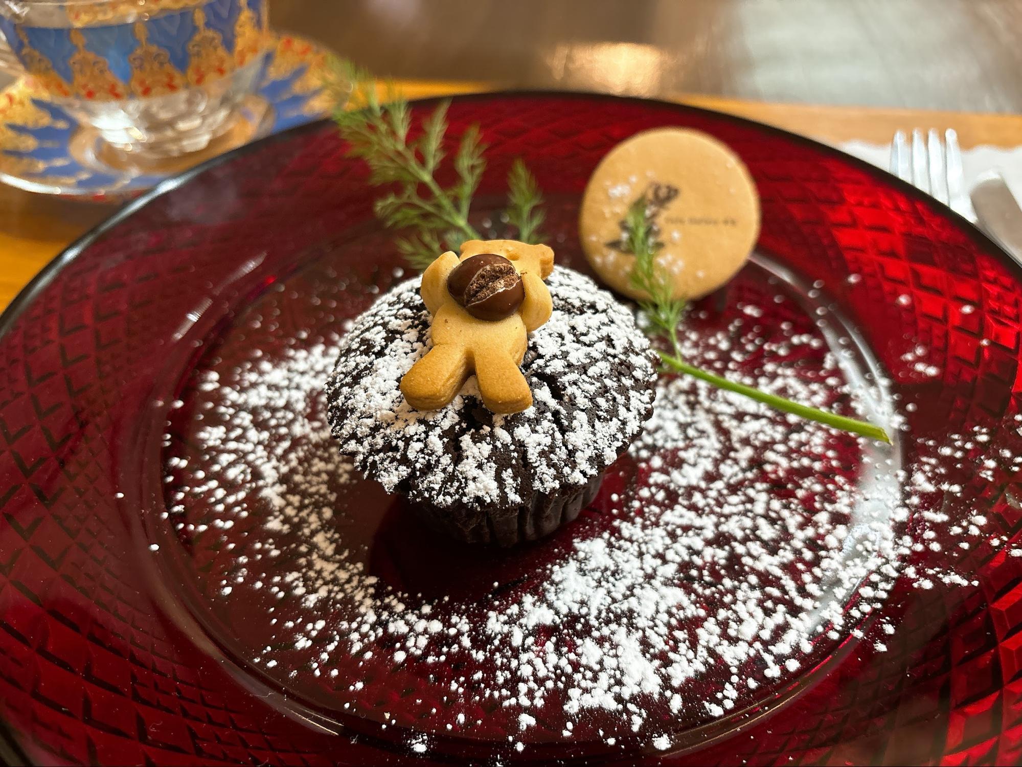 抱っこクマのクッキーがのっていて見た目もかわいく、ケーキをひと口食べるとしっかり濃厚で美味しかったです。