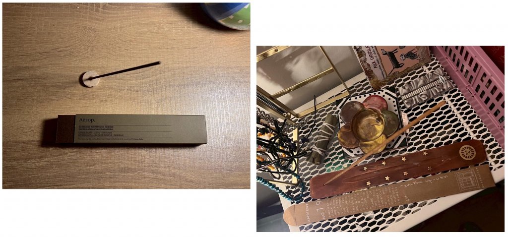 「疲れたときや落ち着きたいとき、お香は自分の気分やお部屋の雰囲気を変えてくれる大切なアイテム!ウッド系の匂いが好きなので、街中や旅先など、色々な場所で探して使っています」