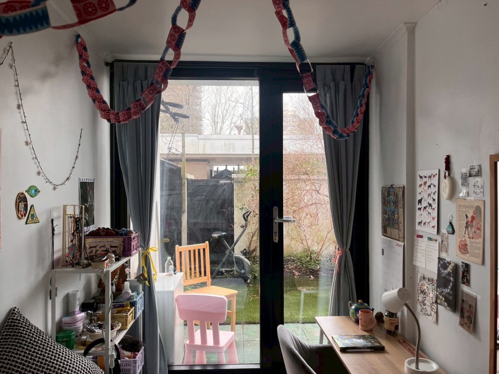 「1年ほど落ち着く場所が決まらず、3回引っ越してようやく4件目となる今の家に落ち着いたところです。この家に住もうと思った理由は、太陽や自然との距離が近かったから。キッチンの大きな天窓やプライベートな広い外庭はもちろん、自分の部屋の目の前にある中庭から外の空気を感じやすいところが気に入っています。800£がロンドンでの家賃の相場だけど、それより断然安かったという点も決め手となりましたね」