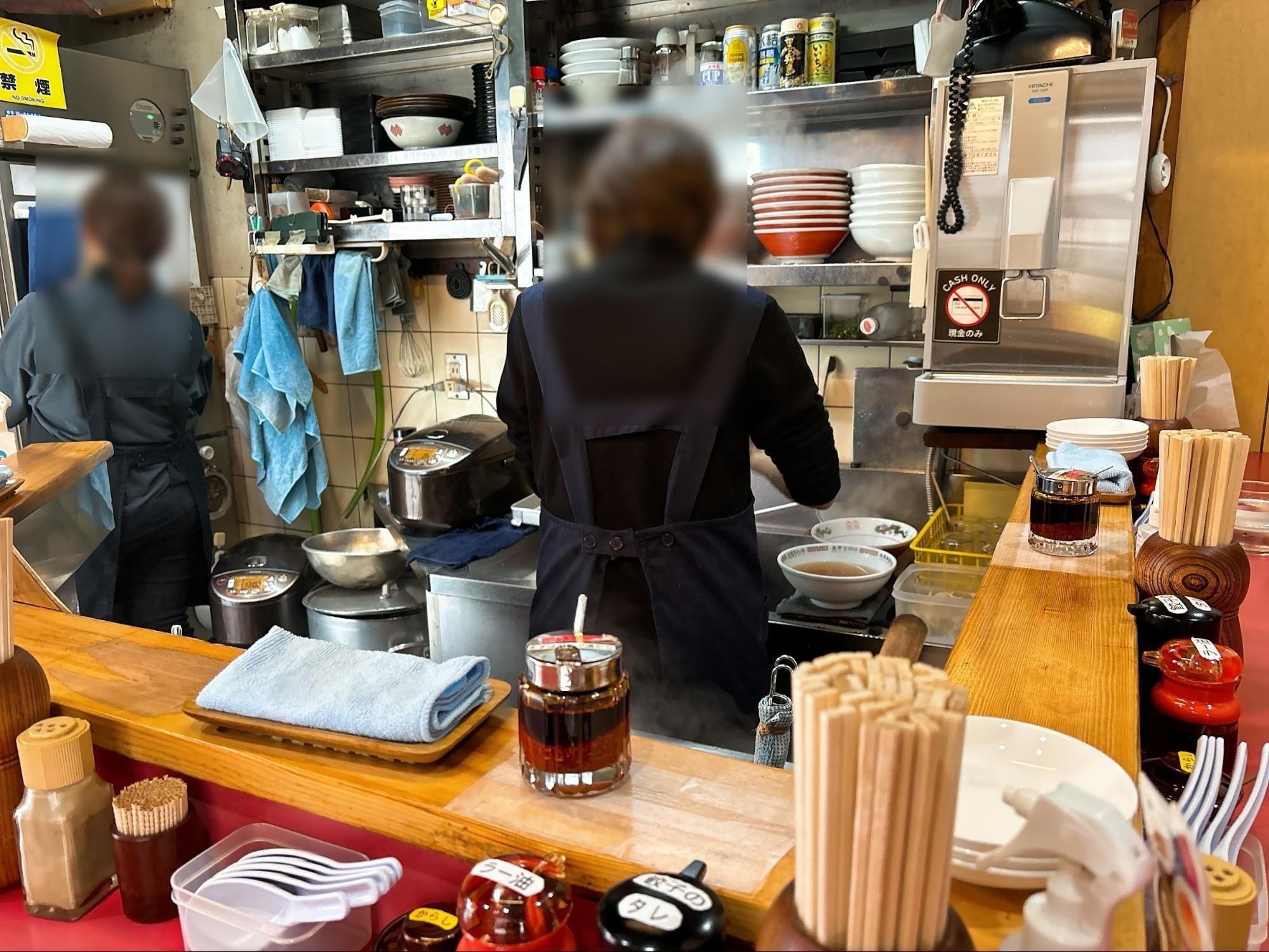 カウンター越しにラーメンを作っている様子が見えて、距離が近いです。