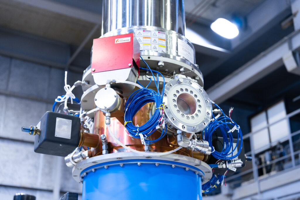 磁場閉じ込め方式の核融合炉において、核融合反応の条件となるプラズマ状態を作り出すために必要な加熱システムです。ジャイロトロンは長年にわたり量子科学技術研究開発機構(QST)をはじめとする国の研究機関や学術機関等で多くの研究者によって研究開発が行われてきました。2021年には、国際的な研究開発プロジェクト「ITER」で日本国内機関としてQSTが担当する8機のジャイロトロンを完成させています。 当社はその技術をベースにしながら、キヤノン電子管デバイス株式会社を始めとするものづくり企業の協力のもと、高周波数ジャイロトロンシステムの開発や出力の長時間化など、日本発のジャイロトロンが世界中で利用されるように研究開発を行い、産業転用できるよう取り組んでいます。加えて製品管理や品質保証など、ジャイロトロンの社会実装に向けて必要なプロセスを民間企業の立場から推進しています。