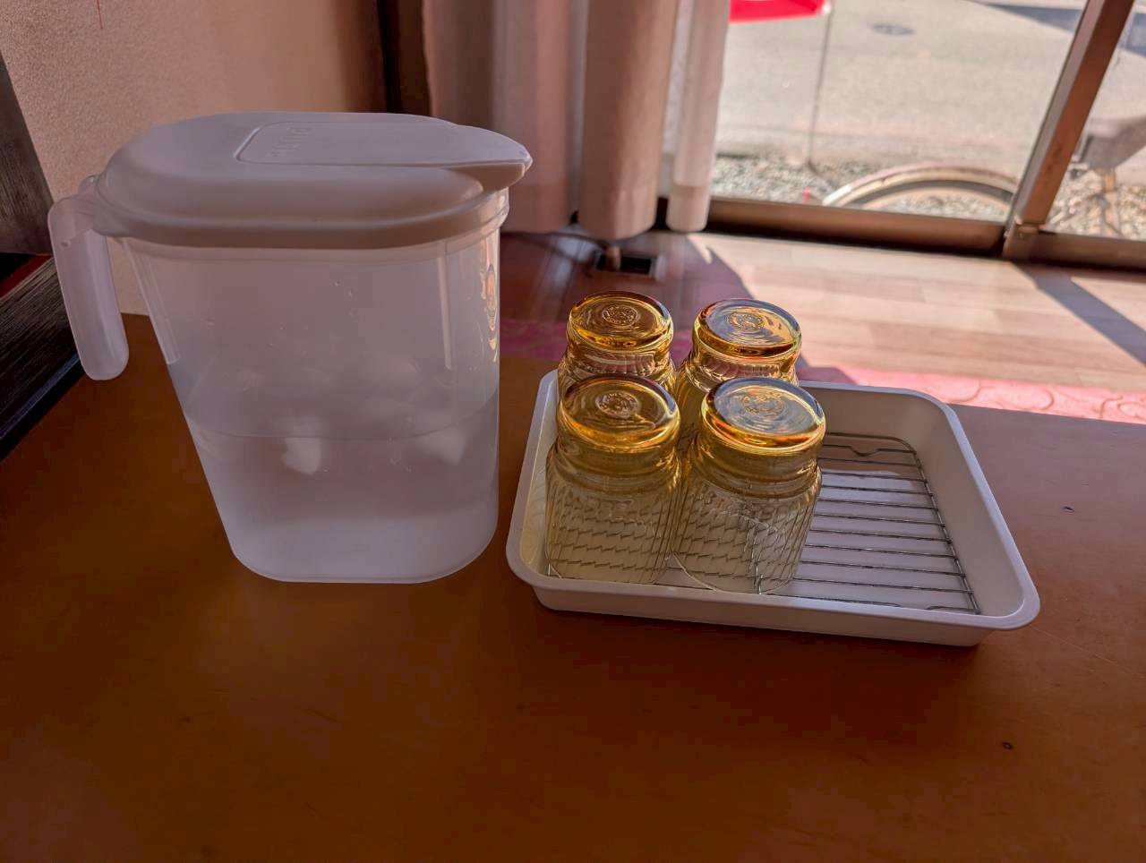お冷はテーブルにポットとグラスを用意して頂けました。