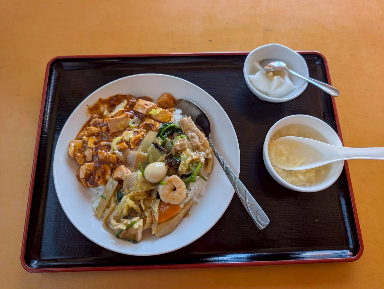麻婆豆腐と中華丼が合い掛けに成ってるんですね。