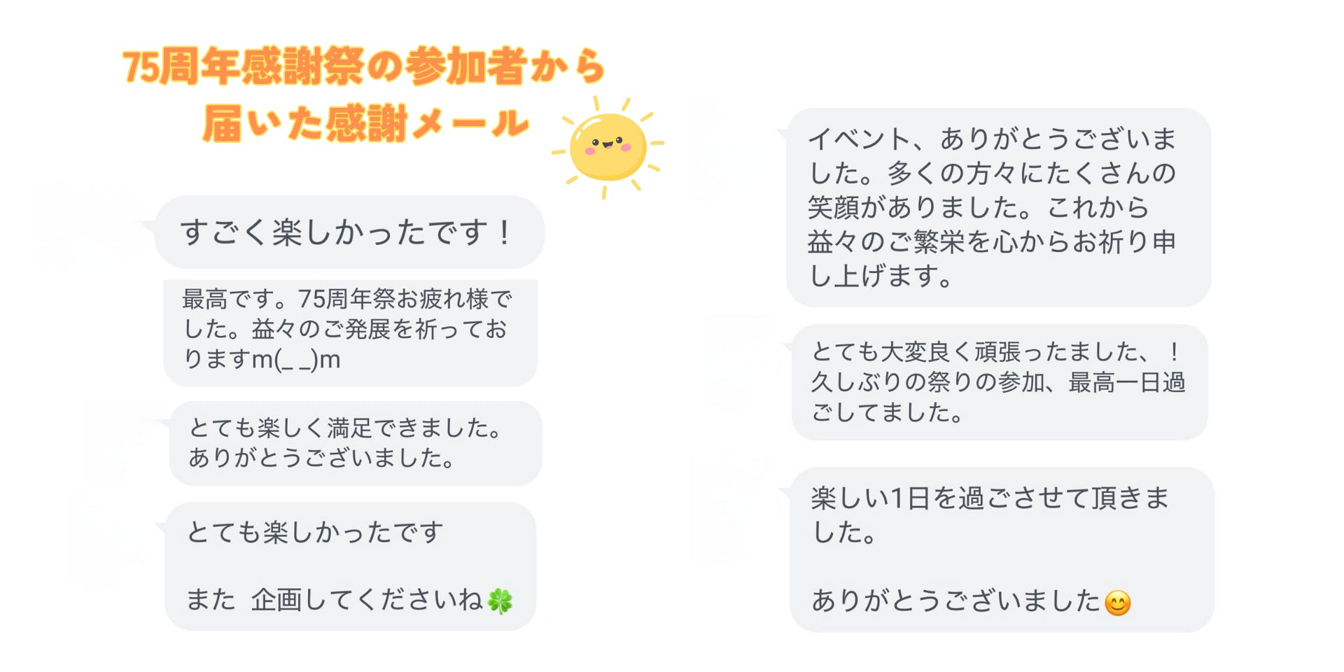 ありがたいことに感謝祭終了後には、参加者から温かいメッセージメールを多数いただき、私たちの活動が間違っていなかったことを教えてくれました。さらには、イベントに共鳴して「この会社で働きたい」と入社に踏み出してくれた社員もおり、笑顔の輪は着実に広がっています。