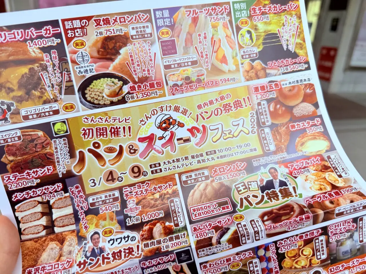 2026年3月4日~9日の間「さんのすけ厳選!パン&スイーツフェス2026」が開催される高知大丸はこちら ↓↓
