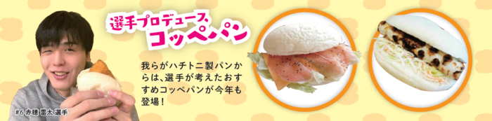 ハチトニ製パンからは、昨年も大好評だった選手とのコラボこっぺを販売します。