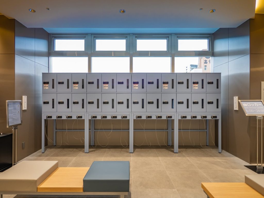 朝食は「無料元気朝食」をビュッフェ形式で提供。また、宿泊者向けにチェックイン前から利用可能な無料のセルフロッカーを設置しているという。