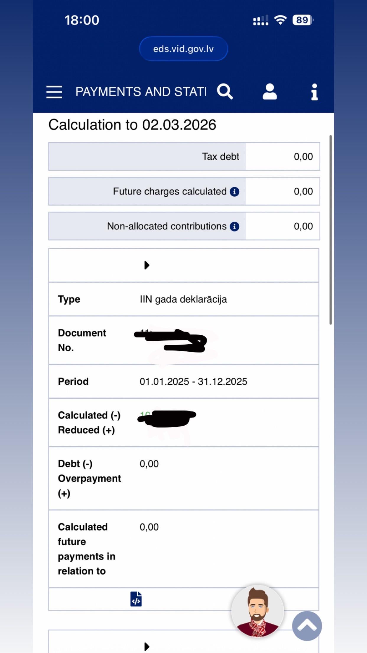「支払い」>「コミットメント」で税金還付額が緑色で表示されるようになりました。