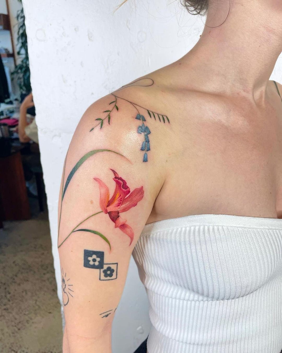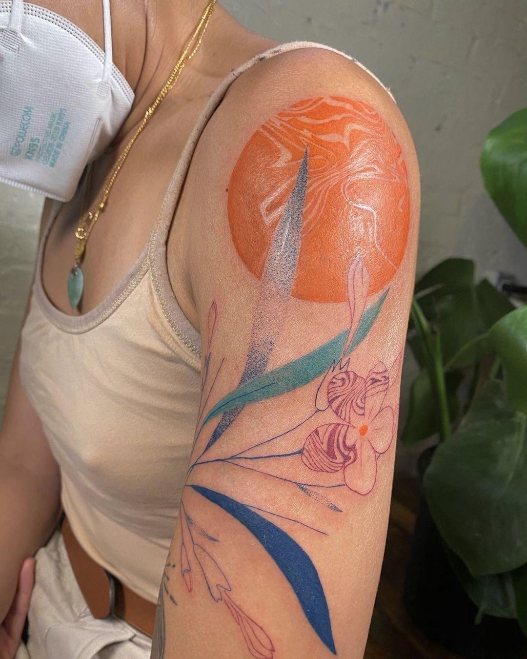 こんにちは! ミュンヘン(またはアウグスブルク、ニュルンベルク、レーゲンスブルクなどの近隣都市)で、現代的な抽象的な植物スタイル、幾何学的な要素、ネガティブスペース、大胆なカラーブロックを使って仕事をするタトゥーアーティストを探しています。 写実主義や伝統的な、より現代的なイラスト構成ではありません。 コンテキストのために参考画像をいくつか追加しました。 どのような推奨事項も素晴らしいものになると思います、ありがとう! Germany