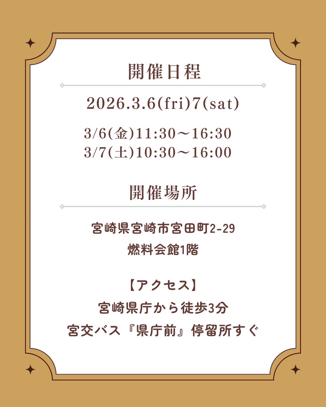 人気店の商品を宮崎で実際に見て購入できる貴重な機会です♪ご興味のある方はぜひ足を運んでみて下さいね!
