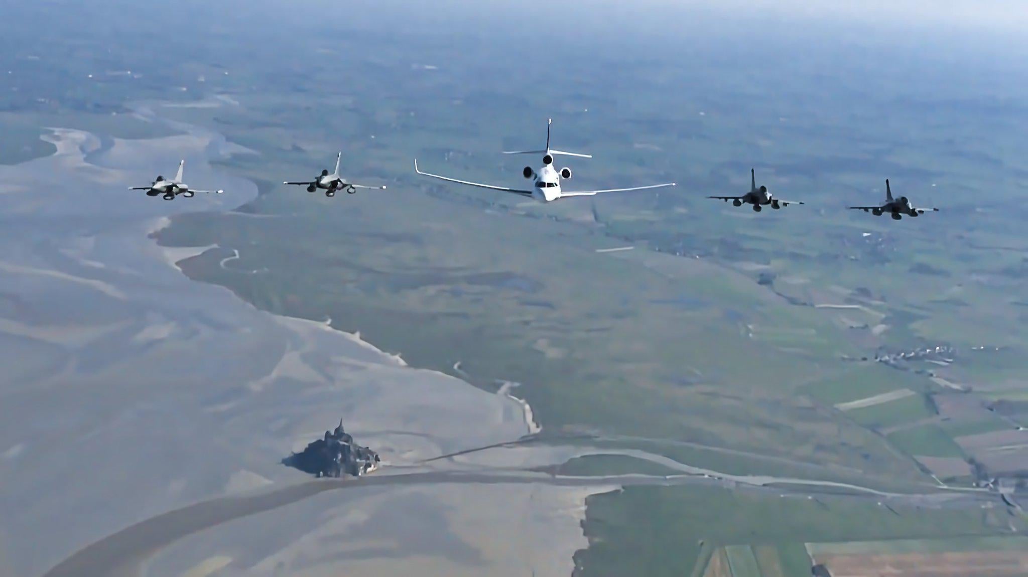 マクロン大統領は核抑止力の近代化について演説するため、ラファール戦闘機4機に付き添われてフランスの原子力潜水艦基地に到着した。