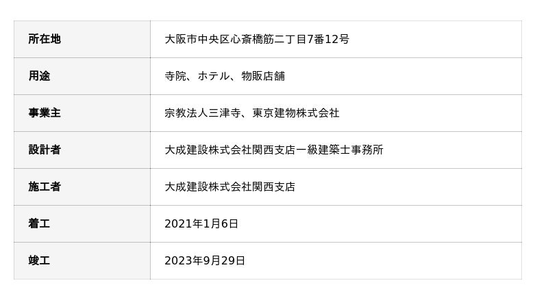 宗教法人三津寺、東京建物株式会社、大成建設株式会社の三者は、寺院・ホテル・店舗一体型の複合施設「東京建物三津寺ビルディング」(大阪府大阪市中央区)を整備した取り組み(以下「本取り組み」)が、クールジャパン官民連携プラットフォーム(CJPF)が主催する「クールジャパン・プラットフォームアワード2026(CJPF AWARD 2026)」において準グランプリを受賞しましたので、お知らせします。