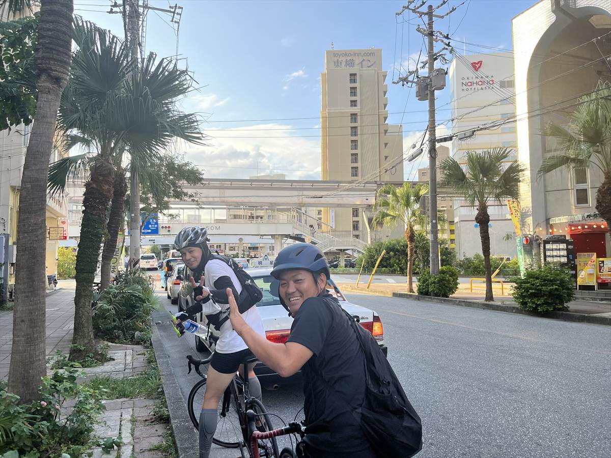 コロナが明けても仕事が思ったより戻らず、自暴自棄になっていたときに、ふと持て余していた時間に自転車にまたがり沖縄一周してみようと、圭一さんと2人で初挑戦しました。