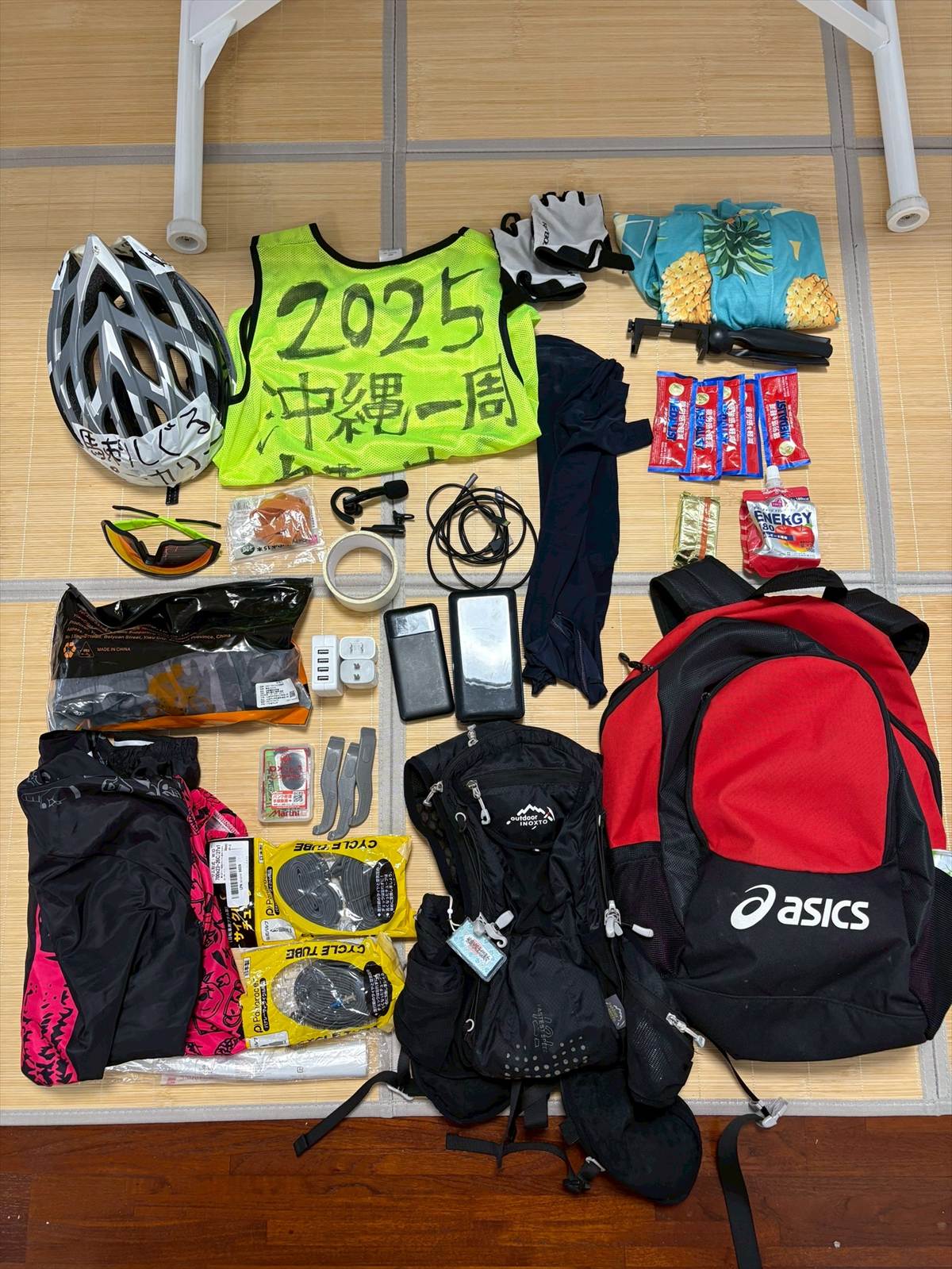 僕の持ち物はシンプルに。洋服は5枚、ズボン3枚、パンツと靴下も3枚ずつ。寒さ対策のジャンパーや配信用の充電器、日焼け止め、サングラスも必須。特に膝・足首サポーター、アミノ酸サプリ、カロリーメイト、サロンパススプレーは欠かせません。飲み物も持って合計約10キロ。最初は荷物が多すぎて重かったけど、回を重ねるごとに軽くしてきました。とはいえ、心配性なので今回も少し多めに準備しました。
