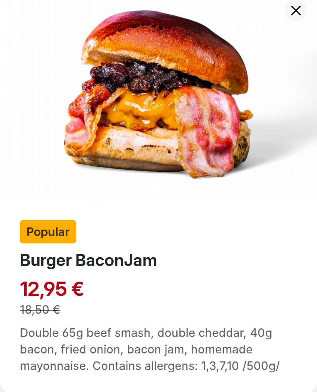 気にしないでください、コンは私に返事を書きました。ご自身で決めてください。ただし、今のところボルト、ウォルト、ページ、およびそれらのアプリでも重量は変更されていません。 (ベーコンジャムの重さはホームページに記載がなかったので、例として他のバーガーの写真を撮りました)。彼らはそれが偶然だと書いていますが、どのアプリ/ページでも同様で、どのバーガーでも同様の重さです。