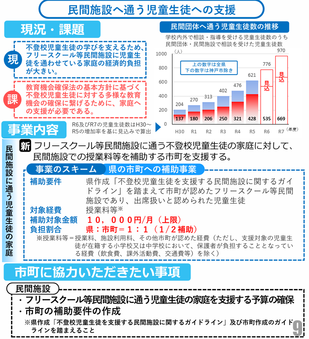 今年度の予算に、「フリースクール等の民間施設へ通う児童生徒への支援」というものがあります。