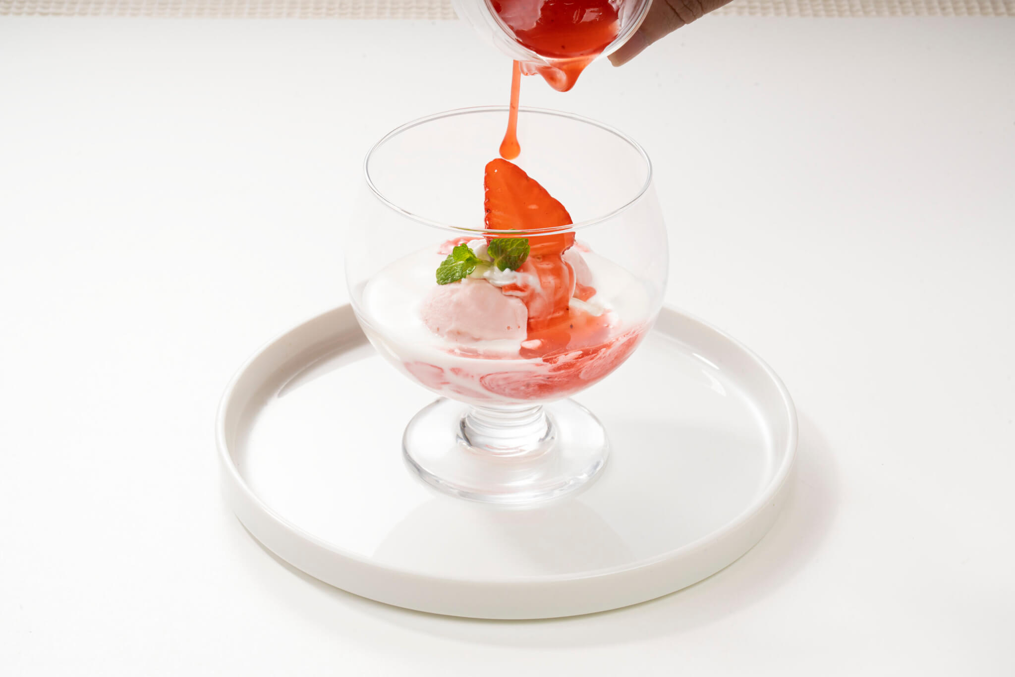 お客様ご自身でいちごソースをかけて仕上げていただく、エンターテインメント性あふれる一杯です。真っ白なミルクが鮮やかなピンク色に染まる瞬間は、まさに「動画映え」間違いなし 。混ぜ具合によって変わる味わいの変化も、ぜひお楽しみください 。
