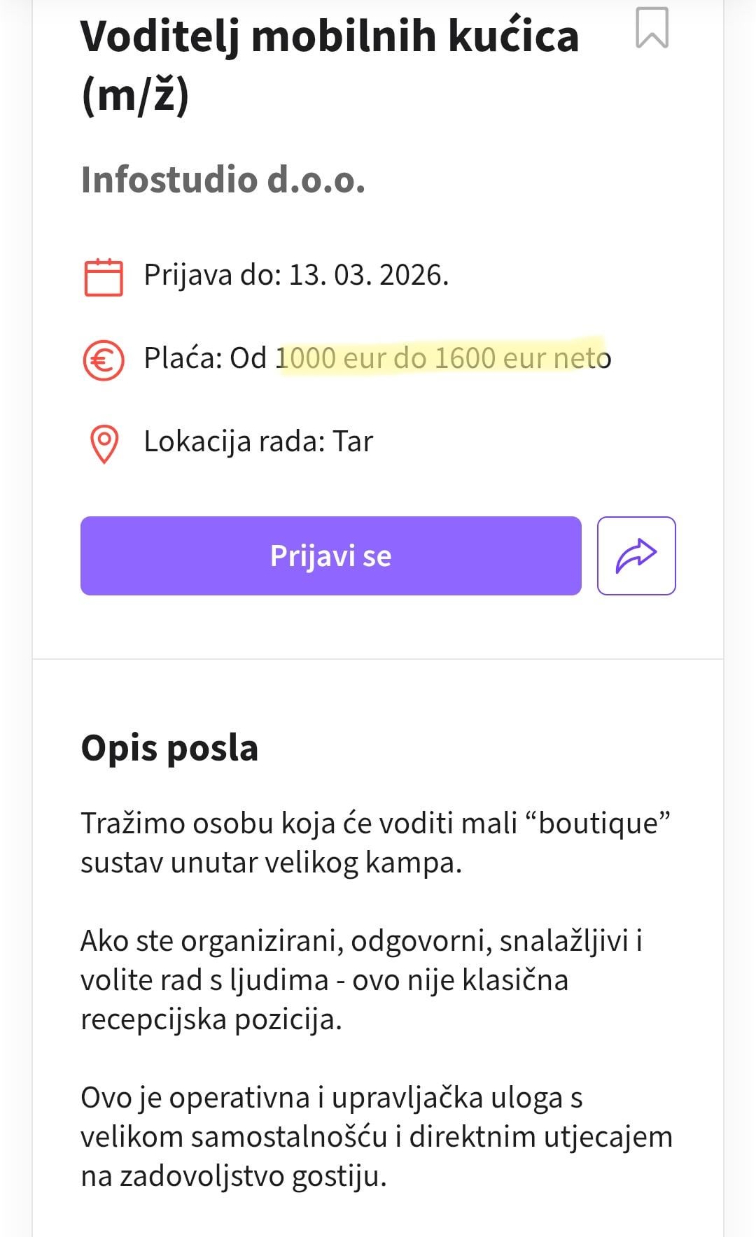 Twitter Pinterest Facebook Tumblr LinkedIn Bluesky Reddit Threads 提供される給与と完全に一致した興味深い範囲の作業タスク "勤務時間中"、さあ皆さん! PS 広告のどこにも休日についての言及はありません:) Croatia