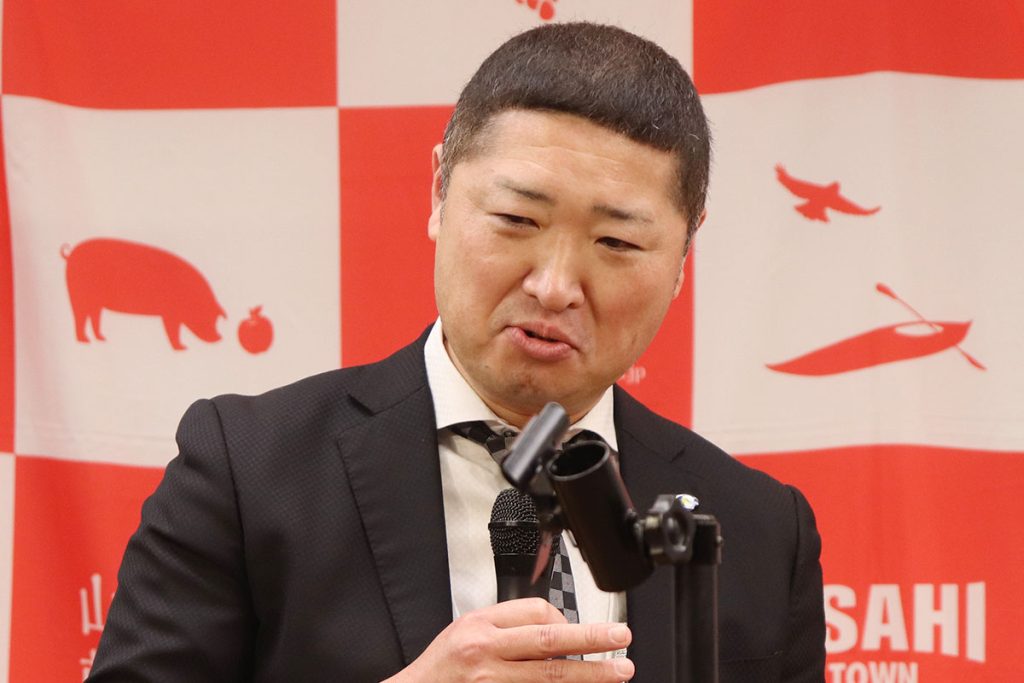 佐藤岳利さんは「おいしい空気と湧き水、温泉。東京と朝日町の2拠点生活で、町の歴史、文化、おいしいものを発掘している」と語り、都市と地方を行き来するライフスタイルを提示した。