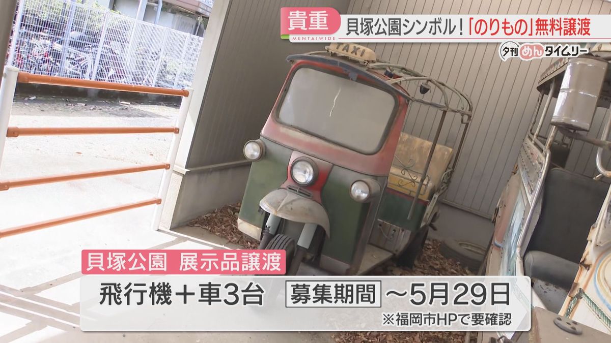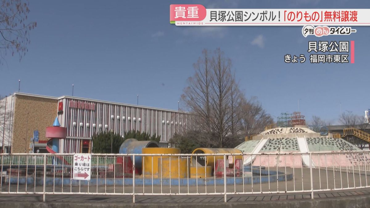 福岡市東区の貝塚公園のシンボルともなっている様々な乗り物。公園の大規模な再整備に伴い、福岡市は乗り物の一部を無料で引き取ってくれる人を募集しています。