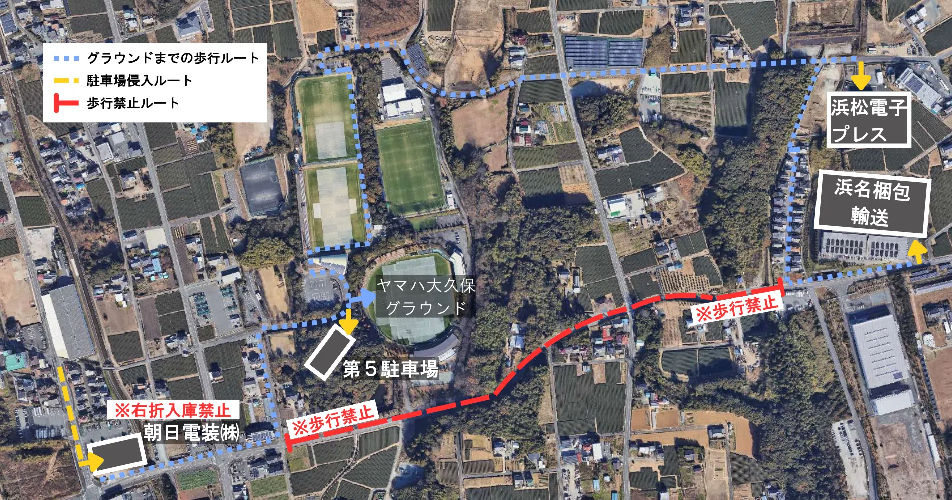 当日は「ゆめりあ球技場」の各駐車場(遠州の園跡地、第1〜3、フットサル場、臨時)は一切ご利用いただけません。
