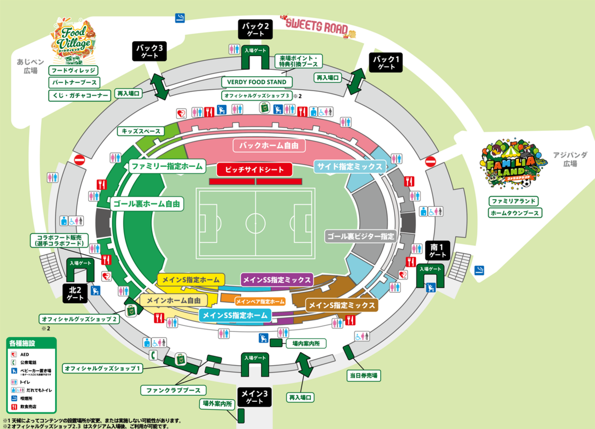 グリーンのドーナツなど、ヴェルディを感じられるコラボフード売店『VERDY FOOD STAND』が場内コンコースに登場します。