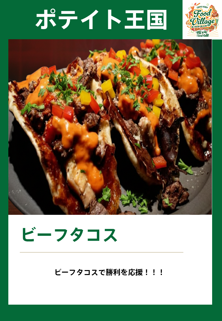 ボリューム満点のお肉料理に、グリーンをあしらったヴェルディカラーのグルメ、ワンハンドで食べられるグルメも勢揃い!ぜひご賞味ください!