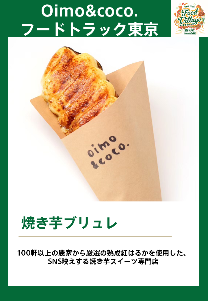 熟成スイーツ焼き芋が絶品の『oimo&coco. フードトラック東京』、愛知県碧南市の野菜・フルーツを使ったワッフルが美味しい『9waffles』初出店!