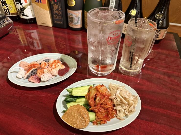 お通しは、モロキューやキムチなどをご用意しています。