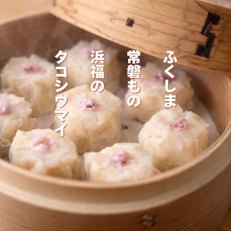 タコシウマイは、福島県産のタコを100%使用した海鮮シュウマイです。
