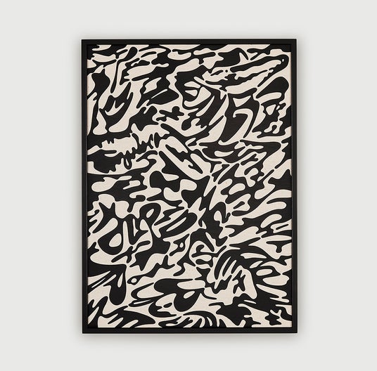 静岡に工房を構える同ブランドは、木材を継ぎ合わせる伝統技法“指物”を得意とし、今回のために制作されたハンドメイドのフレームで、《Between black & white》のテキスタイルを特別に額装し、お披露目します。