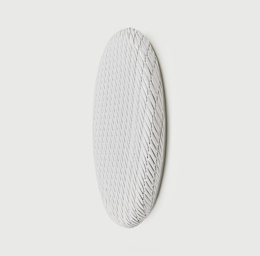 フジエテキスタイルのテキスタイルアートコレクション≪Between black & white≫は、グラフィックデザイナーの小林一毅氏との協業により生まれました。生地を収縮させる特殊なプリントで、風が吹くような模様を表現した立体作品「ふう」と、“生活の記録”として小林氏が描き続けてきた図案を、綿麻のテキスタイルにプリントした平面作品を展示いたします。
