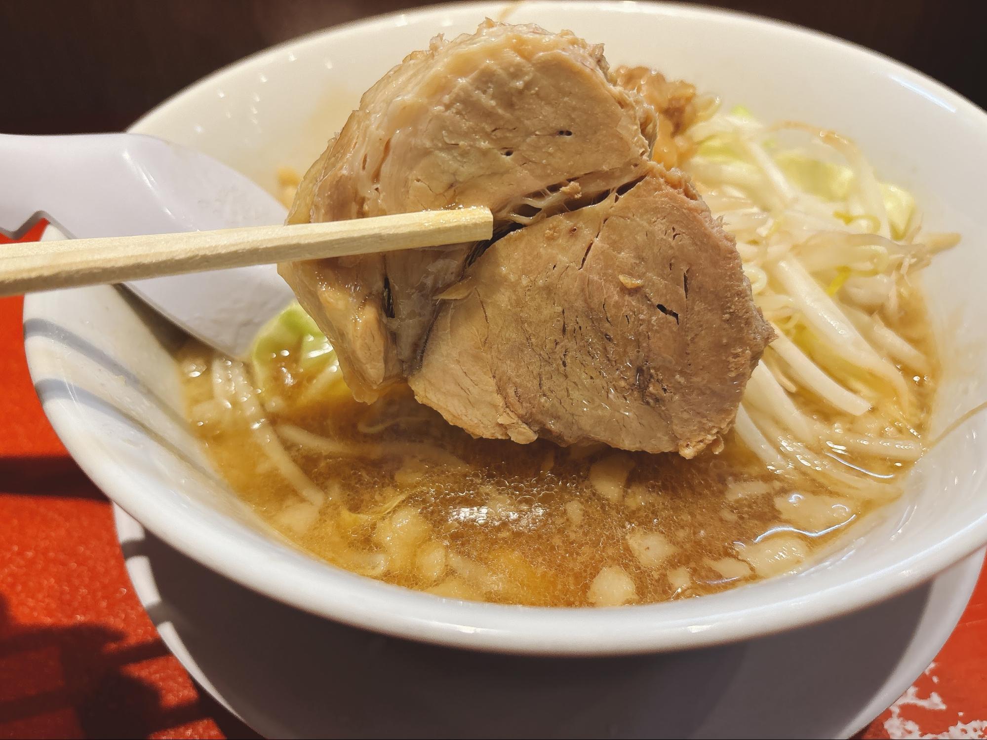 トッピングのチャーシューは分厚くて柔らかく、しっかりお肉を食べている感じがあり、とても美味しかったです。