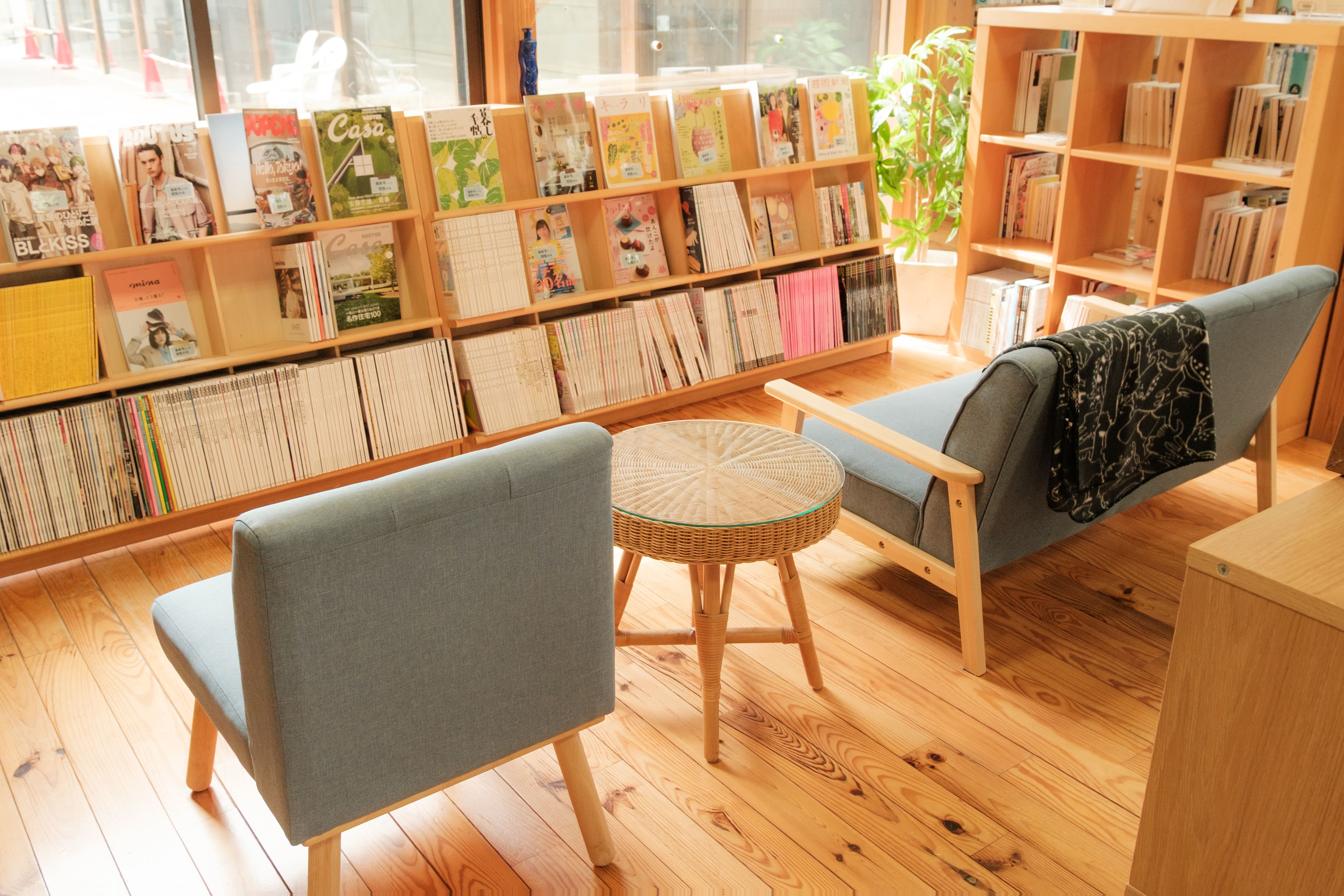図書館入り口にあるカフェコーナーは、お飲み物を飲みながらゆっくりくつろいでいただけるスペースとなっています。