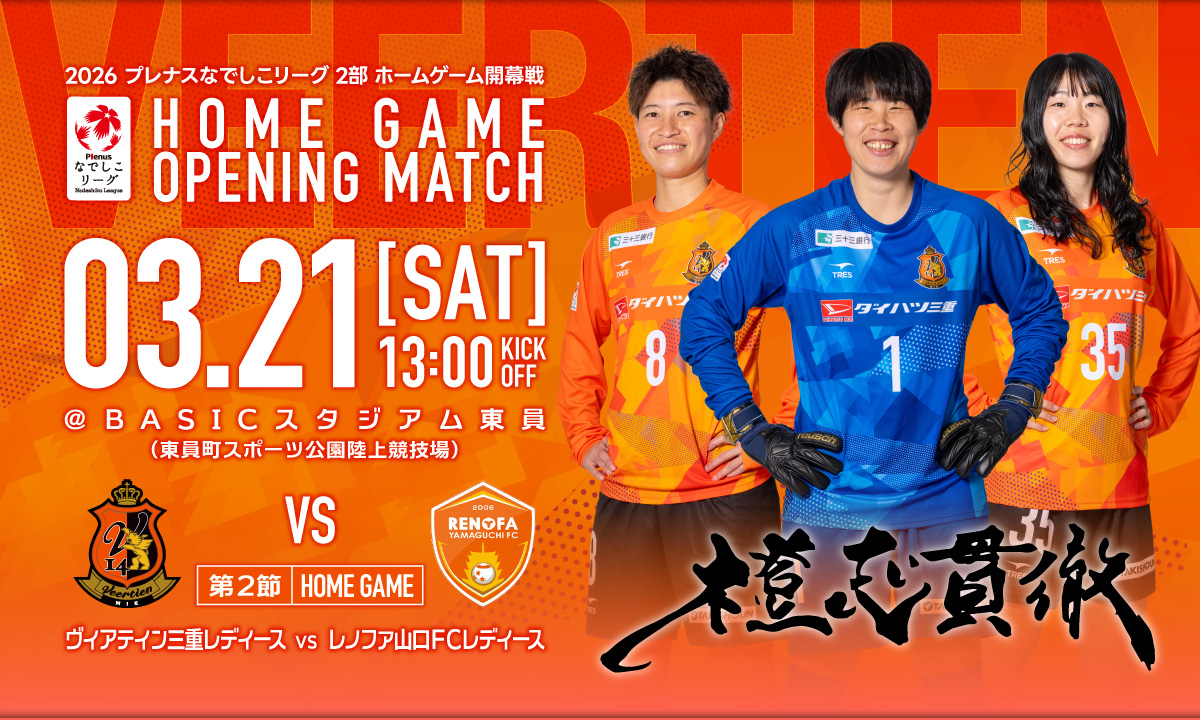 3月21日(土)に開催するホームゲーム「2026プレナスなでしこリーグ2部 第2節」