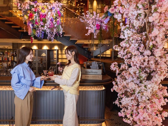 カフェやバー、フラワーアート展示は宿泊せずともご利用いただけます。ぜひ、THE LIVELY 福岡博多ならではの春のひとときをお楽しみください。