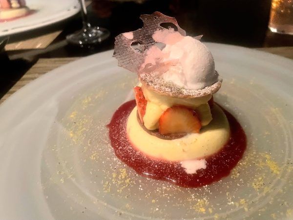 もうお洒落すぎ~!! 運ばれてきた瞬間から桜の香りがふんわりと広がって、春の風に包まれた気持ちになりました。 桜の飴細工がそっと添えられたこちらのデザートプレートは、桜のアイスと薄く焼かれたパイのサクサク感、そしてバニラムースとラズベリーソースがいちごの酸味と重なって本当に美味しい! ミカンとピスタチオのパウダーがキラキラと輝いていてまた美しく、ひと口食べるたびに心がゆっくりと満たされていきました。