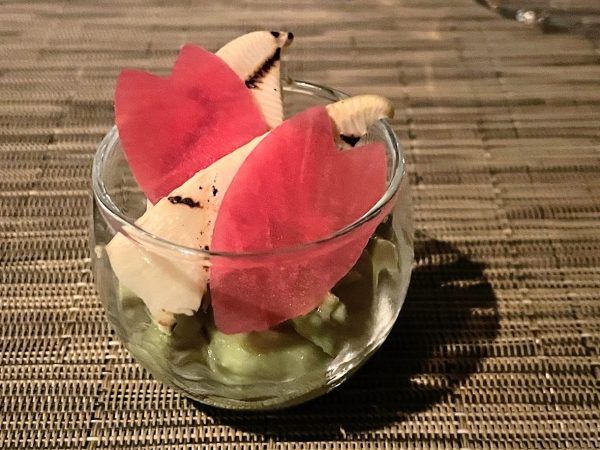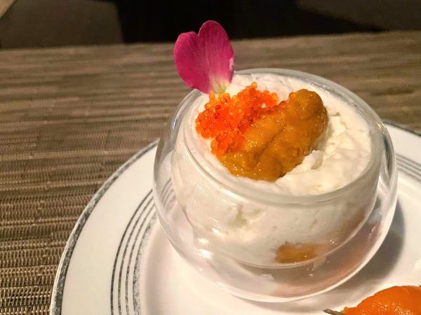 グラスに盛られたこちらのムースも、本当に美味しかった~! ウニの旨味やコンソメジュレの塩味がまた上品で、思わず目を閉じながらいただきました。