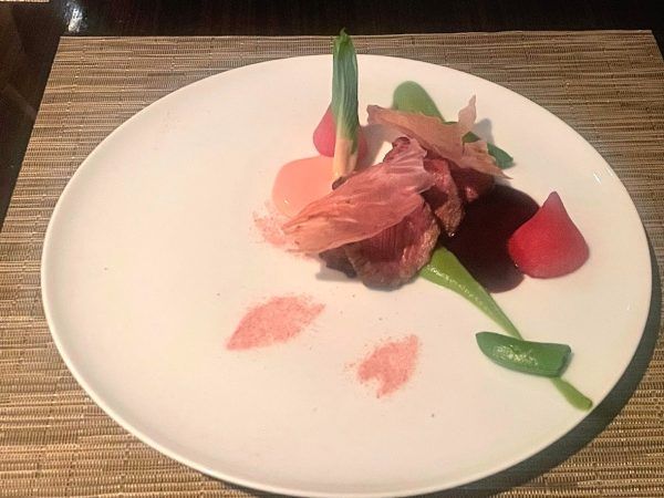 ソースは、「桜のクリームチーズソース」と「赤ワインのソース」、そして「グリンピースのソース」の3種類が楽しめます。 栗原産の黒毛和牛のローストビーフは、やわらかくてとってもジューシー! そしてどのソースも美味しい~。 付け合わせのお野菜も旬のものが使用され、桜のチュイルもパリッとしていて上品な味。とっても贅沢な一皿をいただきました。