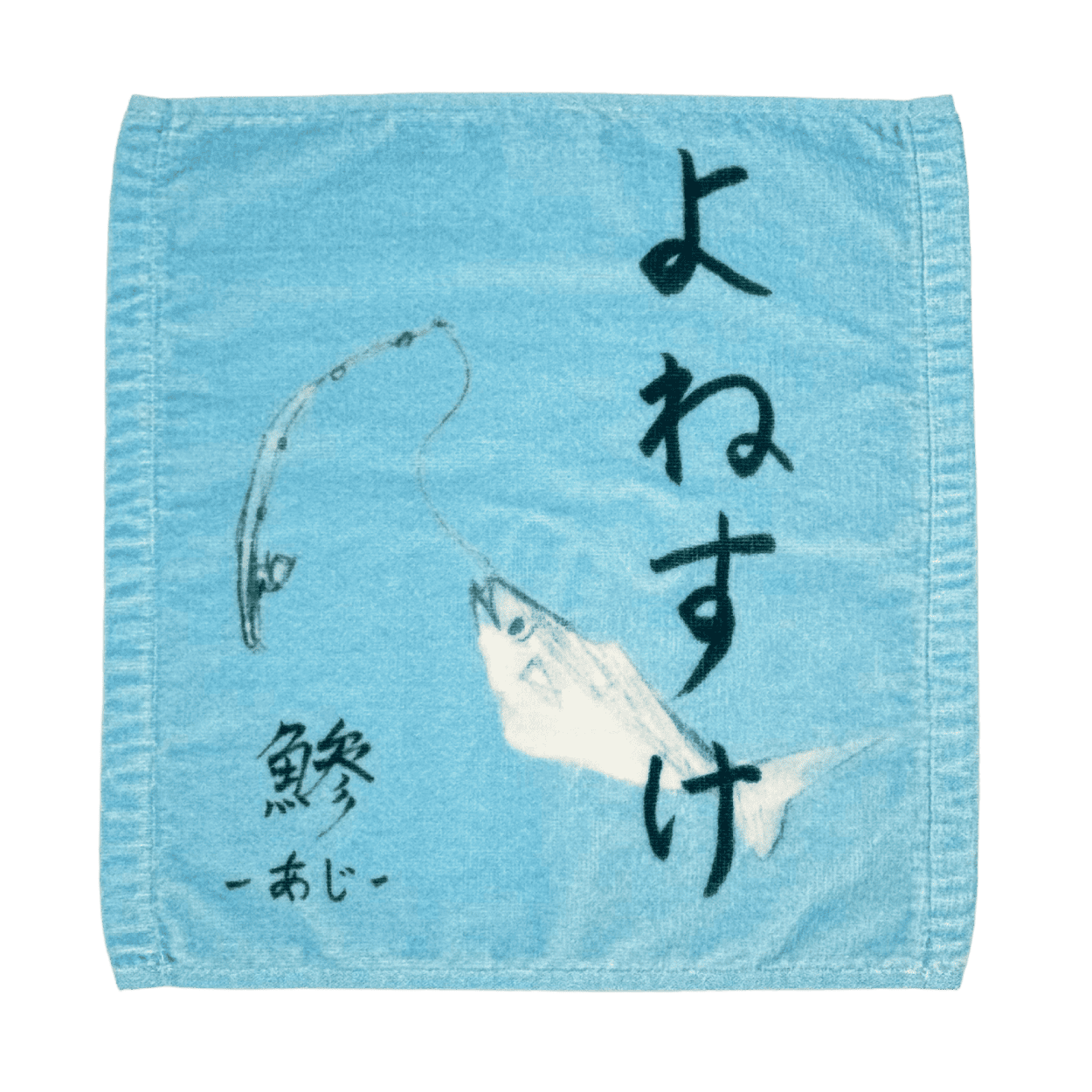 「よねすけ」という愛称がある本人の希望でついにしゃもじが登場。直筆を活かしたもう1アイテムとして掲げることもでき日常使いしやすいハンドタオルを発売します。
