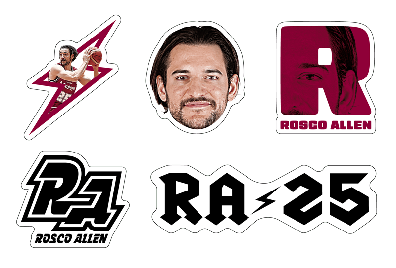 「LIGHTNING」デザインをはじめ、アレン選手の顔やイニシャルデザインのステッカーを集めた5種セットです。