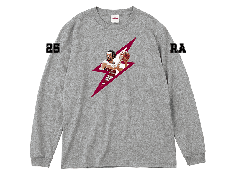 アレン選手のキャッチコピーである「LIGHTNIG」をイメージしたマークを胸にプリントしたロングTシャツです。袖にも背番号とイニシャルが入っています。