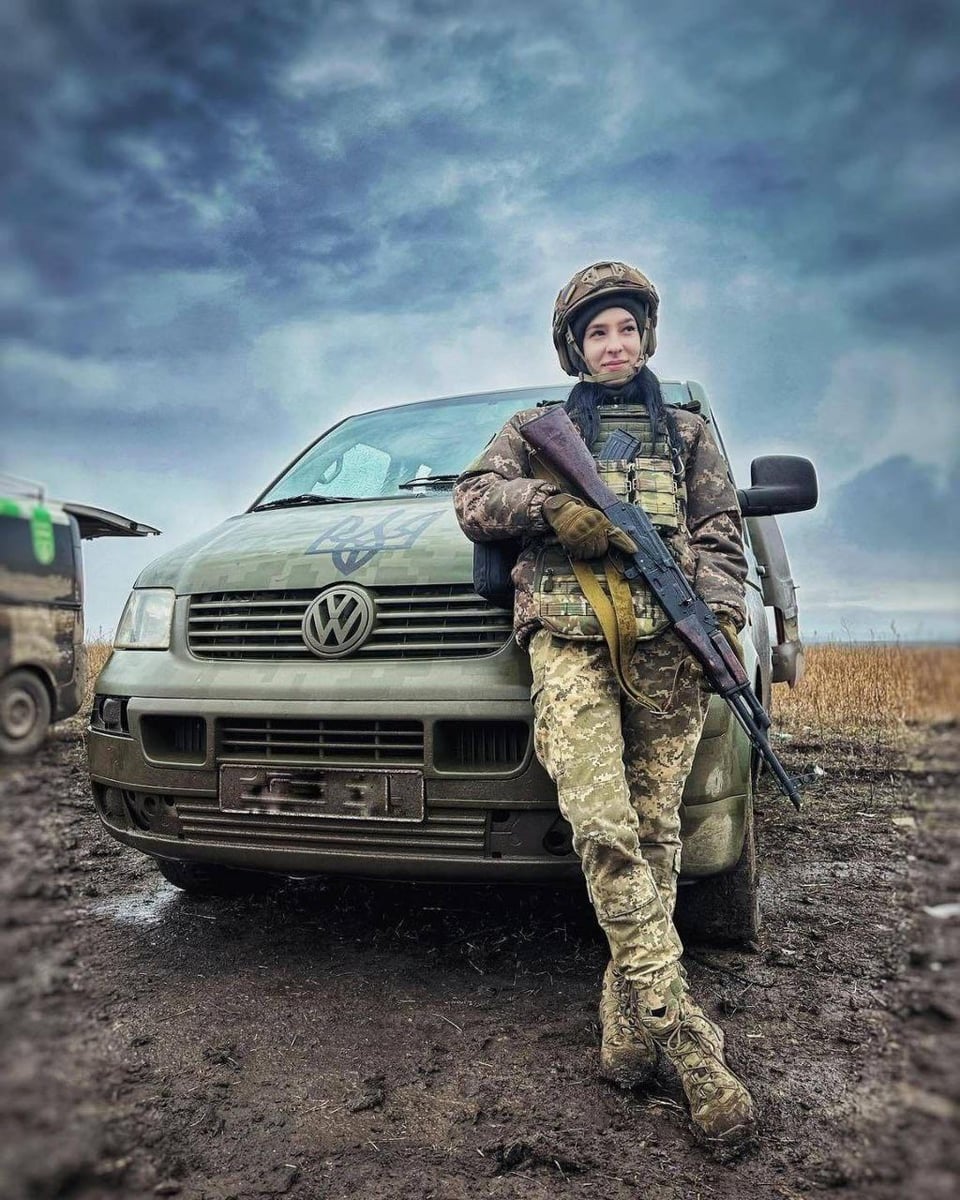 ウクライナ海兵隊第30海兵隊およびウクライナ陸軍第5独立重機械化旅団所属のウクライナ人女性。