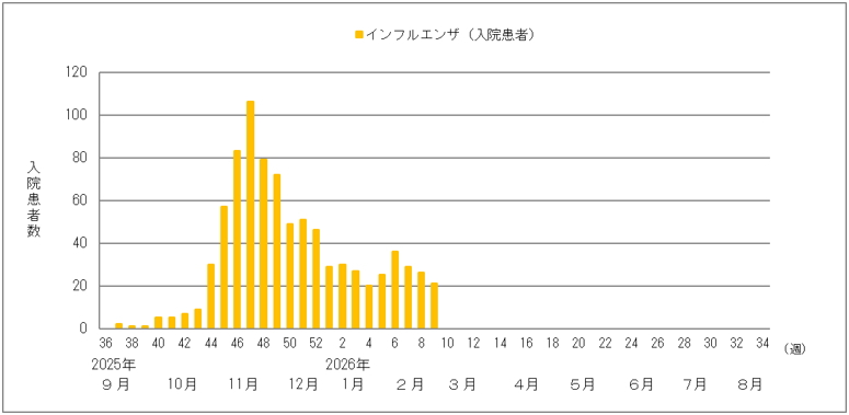 神奈川県の第9週(2026年2月23日~3月1日)のインフルエンザの定点当たり報告数は21.72でした。第5週に今シーズン2回目の警報発令があり、流行が継続しています。感染予防と感染拡大の防止のため、こまめに手を洗い、咳が出るときはマスクをするなどの咳エチケットを心がけましょう。また、体調不良のときは無理せず身体を休めましょう。