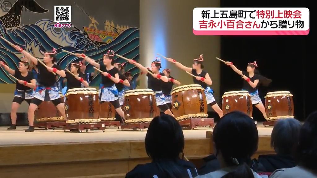 舞台あいさつのイベントでは、地域の子どもたちによる伝統の太鼓でのおもてなしも行われ、会場は一体感に包まれました。