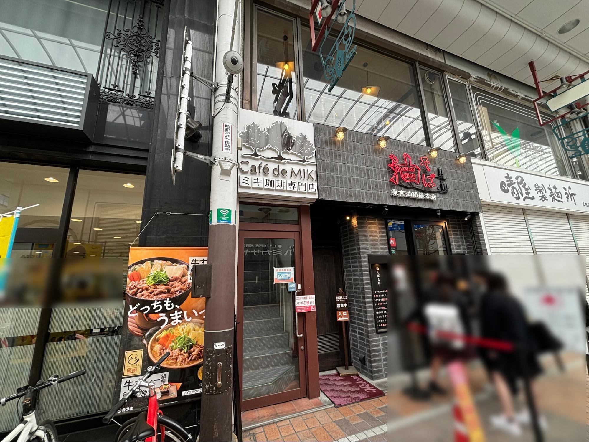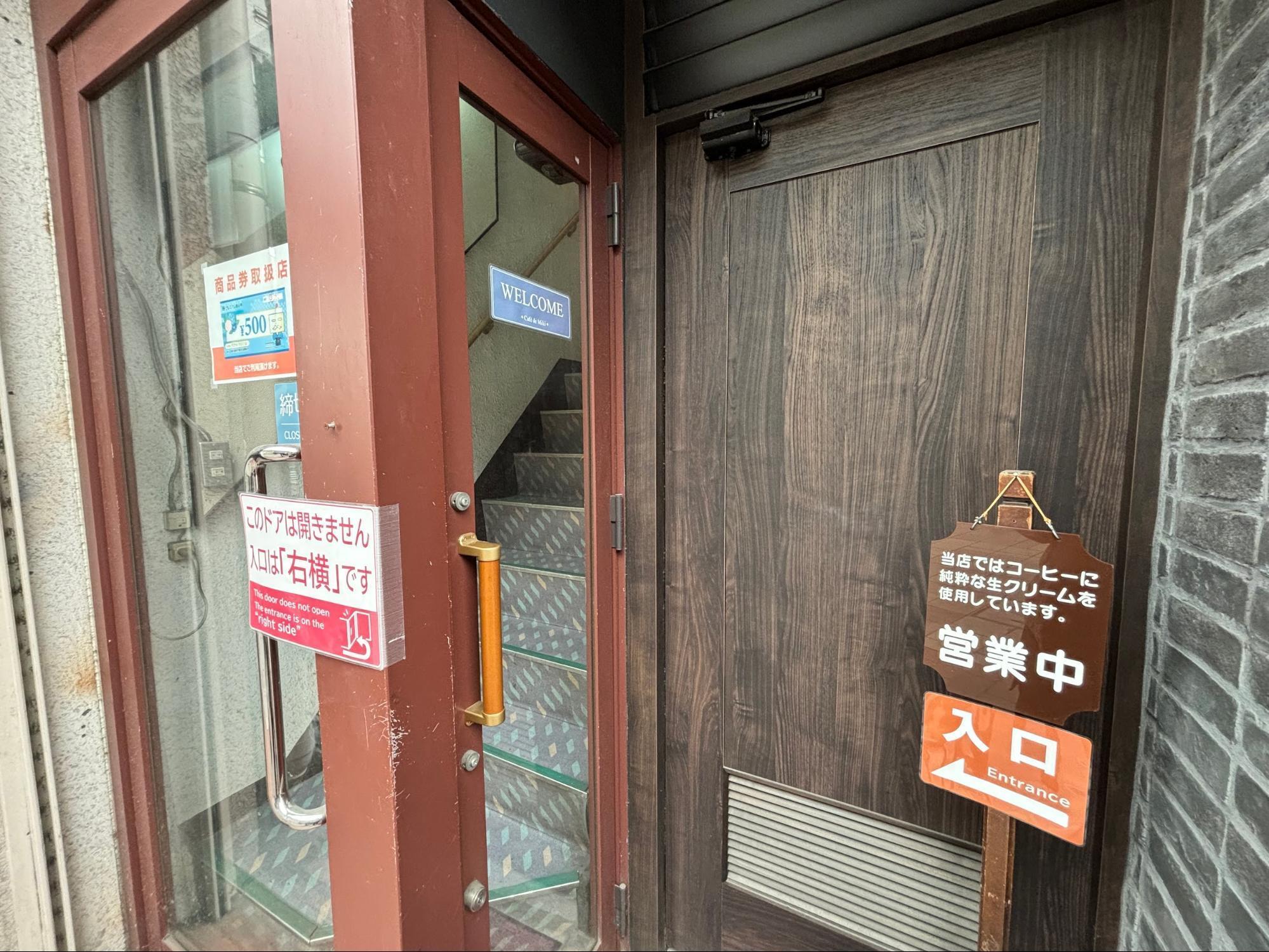 商店街の中にある喫茶店ですが、ぱっと見ただけではカフェだと気づかないほど控えめな入口です。
