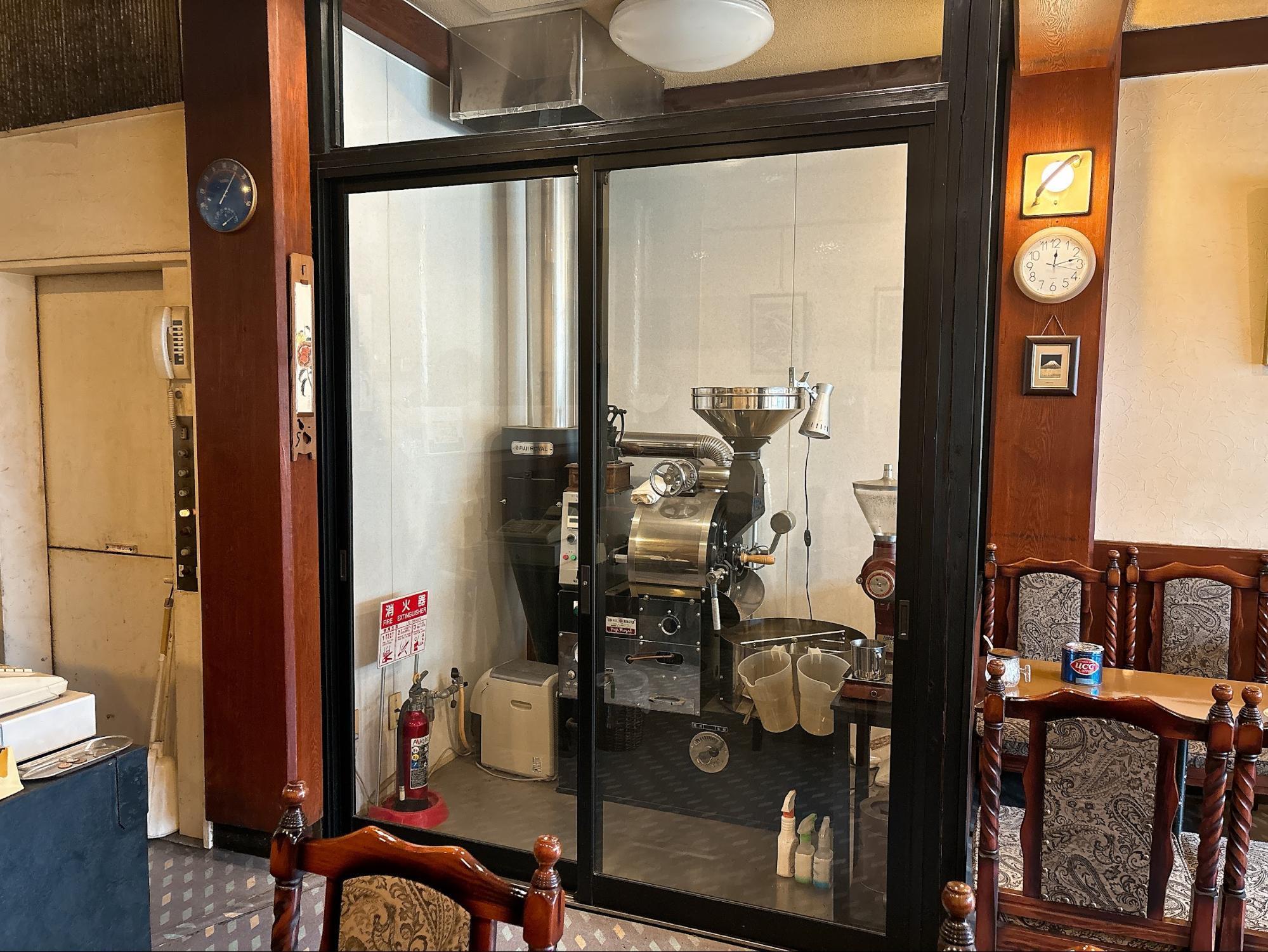 焙煎機もあり、コーヒー専門店らしい雰囲気が伝わってきます。