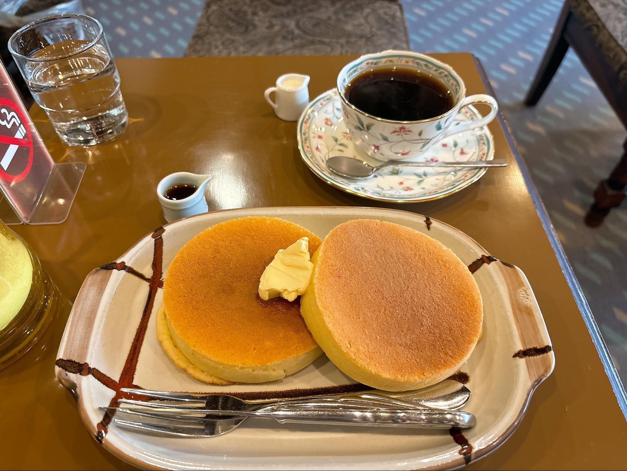 ホットケーキはシンプルで、厚みがありかわいらしい見た目。
