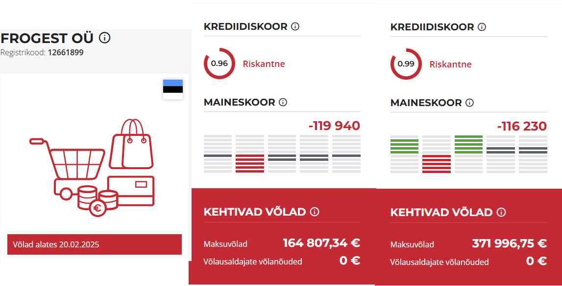 気をつけて! 2月末、フロッグ社は多額の税金を負った。 frogest OÜ (371,996.75 ユーロ) と frogstore OÜ (164,807.34 ユーロ) の 2 社を除けば、税金負債の総額は 536,804 ユーロです。 本質的には、購入するとお金と商品の両方を失う可能性があることも意味します。 どうやらカエルはもう泉に飛び込むことはないようです。 Estonia